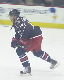 During the Voltigeurs' 2006 preseason training camp, Brassard suffered a subluxated shoulder after a check from Bryan Main of the Gatineau Olympiques. The injury kept him from attending the Blue Jackets' training camp and potentially gaining a place on their opening night roster.[20] The injury required surgery that would keep Brassard out of both the Blue Jackets' and Voltigeurs' line-up until at least March. At that point, he would be eligible to finish out Drummondville's season before joining the Syracuse Crunch, the American Hockey League (AHL) affiliate of the Blue Jackets.[21] Doctors cleared him to play for Drummondville on February 15, 2007, with just over one month remaining in the QMJHL season.[22] He missed a total of 56 games with the injury but began scoring as soon as he returned, with 17 points in his first nine games of the season.[23] In 14 regular-season games after his return, Brassard scored six goals and recorded 25 points.[6] He added nine goals and 15 assists in 12 postseason games before the Voltigeurs were eliminated by the Rouyn-Noranda Huskies in the second round of QMJHL playoffs.[24] Brassard finished his junior ice hockey career with 218 points in 151 games, and the Voltigeurs retired his No. 61 jersey in 2016.[25]
