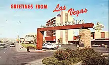 The hotel served as the primary backdrop for the TV show Vega$ which aired on ABC from 1978 to 1981.[84][85] The 1980s Aaron Spelling soap opera Dynasty included footage of the hotel, and use of the Presidential Suite.[86] The hit 1980s NBC TV series Remington Steele filmed its 60th Las Vegas-set episode at the inn, where both the exterior and interior are shown regularly throughout the episode.[87]