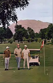 The 18-hole, par-72[51] Desert Inn Golf Club opened in 1952. Initially, Dalitz had pushed the idea of opening a golf course next to the hotel with an entrance off the Strip, which would be accessible to other hotels and boost the city's profile as a resort destination. When other hotel owners rejected this idea, Dalitz built the course on the hotel premises.[57] He also opened an outdoor dining area, to accommodate golfers and swimmers who might prefer a more informal atmosphere.[58] The course hosted the PGA Tour Tournament of Champions from 1953 to 1966,[47] attracting professional golfers such as Sam Snead, Arnold Palmer, and Jack Nicklaus.[57] Allard Roen was director of the tournament for many years and was instrumental in breaking down the race barrier on the Strip. He broke the all-white club convention by permitting Sammy Davis, Jr. to play on the course.[59] From 1958 it hosted the Golf Cup Golf Tournament, the largest tournament in the world for amateur golfers.[60]
