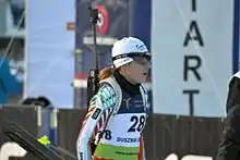 Desislava Stoyanova (Bulgarian: Десислава Стоянова); born 10 April 1992) is a retired Bulgarian biathlete. She was born in Berkovitsa.[1] She competed at six Biathlon World Championships between 2011 and 2017, and at the 2014 and 2018 Winter Olympics. Her best individual result in the Biathlon World Cup is a 22nd place in the sprint. Her best individual result at World Championships is the 38th place in the sprint at the Biathlon World Championships 2015. Her best Olympic individual result is the 61st place in the sprint at the 2014 Winter Olympics.[2] She is engaged to fellow biathlete Dimitar Gerdzhikov from whom she has one child.[3]