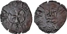 Carlo also sometimes used the version Despotus Romeorum ("Despot of the Romans", i.e. the Byzantines/Greeks) from 1418 onwards. This version of the title had even more dangerous implications for Constantinople, as it implied rulership over the Byzantine people themselves rather than territory they considered part of their empire. To the Byzantines, such power could only legally be exercised by the emperor.[13] Carlo I's successor, Carlo II Tocco, used the title "Despot of Arta", which connected him to the old capital of the Epirote realm rather than to the territory of the Byzantine Empire at large. Even then, "Despot of Arta" was no more acceptable to the Byzantines than "Despot of Romania" as it was still in relation to a specific territory, rather than on the position of a despot relative to the emperor in court hierarchy.[14] This title was also used by Carlo II's successor, Leonardo III Tocco.[15] Later members of the Tocco family, pretenders to the title, used both "Despot of Romania" and "Despot of Arta"; a 1697 Italian text titles the despots of the Tocco family as Despoti de Romanìa, & del'Arta ("Despots of Romania and of Arta").[16]