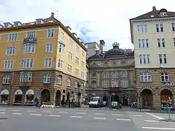 The site of the theatre, then a worn down apartment block, was in the spring of 1902 acquired by a development company, Bona, which had plans to build a large theatre and in the same time to open a passage between Gammel Kongevej and the new Vesterbro Passage, now part of Vesterbrogade, which was the backbone in a westward expansion of Copenhagen's city centre.[1] Bona engaged Viggo Lindstrøm in the project as artistic consultant, he had been resident actor and director at Folketeatret but resigned after a fashionable controversy with its director, and in 1906 the company applied the Ministry of Justice for a license for the theatre's operation. The application was initially rejected by Peter Adler Alberti, the minister of Justice, supposedly due to a link with Folketeatret's director, but after personal intervention from King Frederik, the license was finally granted.[2]