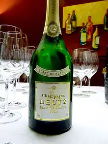 In 1983, the house was acquired by the Rouzaud family, who also own Louis Roederer which helped restore the house to better financial footing. Deutz owns holding in the Bordeaux wine estate of Chateau Vernous and the Rhone estate of Delas Freres. In 1988, Deutz formed a partnership with New Zealand producer Montana Wines to make sparkling wines in the Marlborough wine region of New Zealand.[1] Since 1993, the estate has been part of the Louis Roederer portfolio of wineries, which also include the Bordeaux wine estate of Château de Pez.[2] In the early 1990s, Deutz partnered with Beringer Wine Estates and a San Luis Obispo landowner to form the Californian sparkling wine producer Maison Deutz. By 1997, the estate wasn't producing the financial results that Deutz and Beringer were expecting and their interest in the company was sold to the Californian winemaker who rebranded the wine as Laetitia.[3]