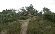 The Devil's Jumps are a series of three small hills near the village of Churt in the county of Surrey in southern England.[1] In the 18th century, the hills were known as the Devil's Three Jumps.[2] The Devil's Jumps are linked to a body of folklore relating to the surrounding area.[1] The highest of the three Jumps, lying to the west, is High Jump with an elevation of 413 feet (126 m). Middle Devil's Jump has an elevation of 328 feet (100 m) and once supported an observatory built by 19th century British astronomer Richard Christopher Carrington.[3] Stony Jump, the easternmost of the jumps, has an elevation of 394 feet (120 m).