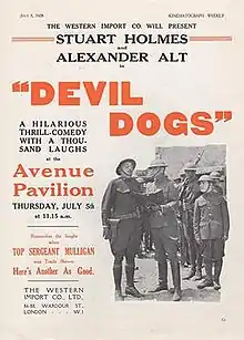 Devil Dogs is a 1928 American silent comedy film directed by Fred Windemere and starring Pauline Curley and Stuart Holmes.[1] It takes place during World War I.