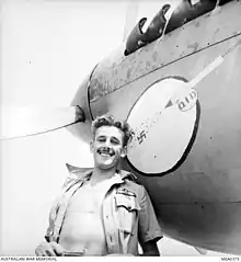 - ↑ Australian War Memorial collection. "Sicily, Italy. 1943. Pilot Officer (PO) D. Minchin, No. 450 (Kittyhawk) Squadron RAAF, of Chatswood, NSW, stands beside his Kittyhawk aircraft with nose art depicting fly spray targetting two swastikas. PO Minchin flew with the Desert Harassers through operations from El Alamein to Tunis and Sicily. He shot down a Messerschmitt Bf109 aircraft during operations over Cape Bon in Tunisia". awm.gov.au. Australian War Memorial. Retrieved 30 June 2020.