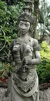 Dewi Sri or Shridevi (Javanese: ꦢꦺꦮꦶꦱꦿꦶ, Balinese: ᬤᬾᬯᬶᬲ᭄ᬭᬶ, Dewi Sri, Sundanese: ᮑᮄ ᮕᮧᮠᮎᮤ ᮞᮀᮠᮡᮀ ᮃᮞᮢᮤ, Nyai Pohaci Sanghyang Asri) is the Javanese, Sundanese, and Balinese Hindu Goddess of rice and fertility, still widely worshiped on the islands of Java, Bali and Lombok, Indonesia.[1] She is often associated or equated with the Hindu goddess Lakshmi, the shakti (consort) of Vishnu.[2]