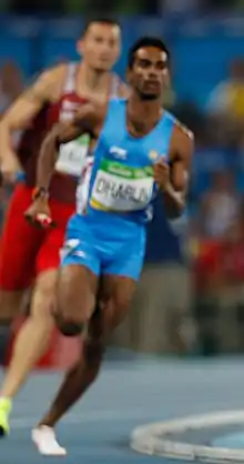 Dharun Ayyasamy (born 31 December 1996) is an Indian track athlete. He specialises in the 400 metres and the 400 metres hurdles events. He participated in the 4 × 400 metres relay event at the 2016 Summer Olympics.
