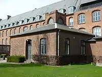 The Deaconesses' premises comprise 33,000 square metres (360,000 sq ft) of buildings on 4 hectares (9.9 acres) of land.[2] The original main building is a long three-winged building which runs along Peter Bange Vej. It was designed by Hans Jørgen Holm in a Neo-Gothic style inspired by medieval monasteries and manor houses. The complex has later been expanded by Gotfred Tvede (1922–1923) and Harald Gad (1937–1939).[3]