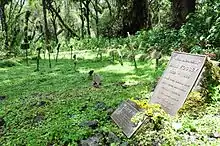 Fossey is buried at Karisoke,[47][48] in a site that she herself had constructed for her deceased gorilla friends. She was buried in the gorilla graveyard next to Digit, and near many gorillas killed by poachers. Memorial services were also held in New York City, Washington, D.C., and California.[49]
