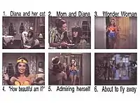 The first effort at a pilot presentation for a television series was based on a comedic conceit that the homely Diana Prince saw herself as a gorgeous Amazon whenever she becomes Wonder Woman—although no one else sees such a change in her looks.