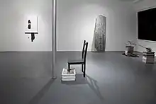 Shpungin's work often deals with themes of memory, longing, loss, and empathy.[1] Influenced by artists like Felix Gonzales-Torres, Shpungin uses deeply personal motifs and narratives in her drawings, sculptures, and video works, often combined with found objects to emphasize a concept that she refers to as “object empathy”.[5][6] In her smaller sculptures and larger installations, Shpungin explores objects and architecture to emphasize contrasting themes such as domestic and communal, light and dark, or interior and exterior.[7]