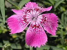 Dianthus callizonus, the beauty's girdle, is a species of flowering plant in the family Caryophyllaceae, endemic to the Piatra Craiului Mountains of Romania.[1][2] Garofița Pietrei Craiului, the little carnation of Piatra Craiului, as it is known in Romanian, is a symbol of the Piatra Craiului massif and the national park of the same name.[3]