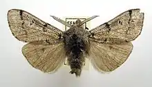 Dicallomera fascelina, the dark tussock, is a moth in the family Erebidae. The species was first described by Carl Linnaeus in his 1758 10th edition of Systema Naturae. It is found in most of Europe, through the Palearctic to Central Asia to Korea.