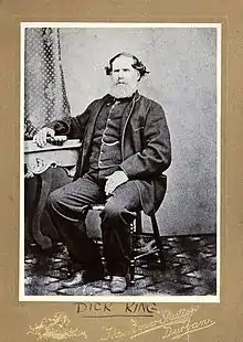 Dick King was born on 26 November 1811 in Dursley in the English county of Gloucestershire. He died on 10 November 1871 in Isipingo, KwaZulu-Natal, South Africa.[1] His family emigrated to the Albany district of the Cape Colony, as part of the 1820 Settlers. In 1828 however his family resettled to the then frontier region of Port Natal, when Dick was about 15 years of age. His first employment was in the clergy. In reverend Francis Owen's company he met Zulu chief Dingane, and also got acquainted with captain Allen Gardiner.