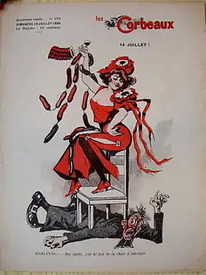 In September 1906, La Calotte, a new anti-clerical newspaper, came out of the press. The establishment reacted harshly to this militancy that soon aggravated the workers' rumblings and the increasingly menacing trade union movements: cartoonists like Jules Grandjouan or Aristide Delannoy were imprisoned, Georges Clemenceau became the "first cop of France" against the militant press with an anarcho-syndicalist tendency.[5]