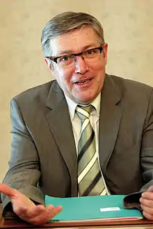 Mouly ran in the 2014 municipal election in Narbonne as the head of the DVD list.[2] He earned 27.13% of votes in the first round and 45.19% of second-round votes,[3] enough to elect him Mayor of Narbonne.[4] He benefitted from the withdrawal of the Union for a Popular Movement-Union of Democrats and Independence list, which helped him to defeat outgoing Socialist Party Mayor Jacques Bascou.[5] However, Bascou filed an appeal for the annulment of the election,[6] which was rejected by the administrative court in Montpellier.[7] In his first term, Mouly promised to focus on the development of employment, security, video surveillance, and decrease taxes.[5] He also strengthened ties between Narbonne and Béziers, led by Robert Menard.[8][9][10]