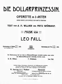 Die Dollarprinzessin is an operetta by Leo Fall. The German libretto was by Alfred Maria Willner and Fritz Grünbaum after the comedy Die Dollarprinzessinen by Emerich von Gatti and Thilo Friedrich Wilhelm von Trotha.[1]