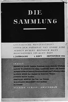 Die Sammlung (German for "The Collection") was a monthly literary magazine, first published in September 1933 in Amsterdam, and primarily affiliated with a number of influential German writers who fled from the Hitler regime during the first years of the establishment and consolidation of Nazi rule.