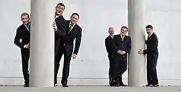 Die Singphoniker is a German male classical vocal ensemble based in Munich, founded in 1980 by six students of the Musikhochschule München, after the model of the Comedian Harmonists. They sing a broad repertory, from Gregorian chant to contemporary music, including Volkslieder, Christmas carols, pop music and other crossover projects. Composers such as Enjott Schneider, Max Beckschäfer and Wilfried Hiller wrote music for them. Their name alludes to "Symphoniker", inserting "sing" into a typical German name for a symphony orchestra.