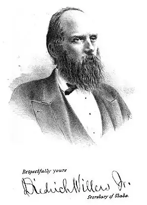 Diedrich Willers Jr. (November 3, 1833 – June 25, 1908) was a Democratic politician from Varick, New York who served as Secretary of State of New York. Born to a working class German immigrant family, his political fortune was a notable example of the effect of civil service reform.[1]