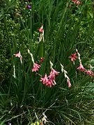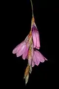 Dierama igneum, the fiery wandflower, is a species of flowering plant in the iris family Iridaceae, native to south east Africa.[1] It is a slow-growing,[2] bulbous perennial growing to 1 m (3.3 ft) tall from clumps of grass-like leaves. Evergreen in its native Africa, it may become herbaceous in colder regions. The trumpet shaped flowers are borne on long, arching stems, and are normally salmon pink in colour. The specific epithet igneum, meaning "glowing" or "fiery", may refer to these arching sprays of blooms.[2]