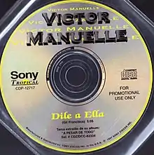 "Dile a Ella" ("Tell Her") is a song written by Gil Francisco and performed by Puerto Rican salsa singer Víctor Manuelle on his fourth studio album A Pesar de Todo (1997).[1] It was released as the lead single from the album. In the song, the singer asks his friend to tell a woman that he loved that he cannot forget her. It became his third #1 hit on the Tropical Airplay chart and spent nine weeks week on top, making it the longest-running tropical song of 1997.[2] José A. Estévez, Jr. called it a tune that "bristles with uninhibited energy".[1] Paul Verna of Billboard cited the song as one of the album's "amorous ditties".[3] "Dile a Ella" was also listed on Billboard's "Best 15 Salsa Songs Ever".[4] "Dile a Ella" won a BMI Latin Award in 1999.[5]