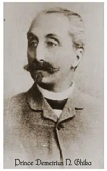 Dimitrie Ghica-Comănești (also Demeter Ghica, Ghica Comăneșteanu, Prince Ghica de Roumanie; 31 December 1839 – 1923) was a Romanian nobleman, explorer, famous hunter, adventurer and politician. He was born into the Ghica family, with nobiliary and ethnic Albanian ancestry roots beginning in the 17th century. He was the son of Ecaterina Plagino (1820–1881) and aga (Rom. archaic Chief of Justice) Nicolae Ghica, boyar (b. 1798 in Iași, d. 1853 in Comănești), from whom he inherited the estate domains of Comănești and Palanca, two of the ten his father had. He graduated a law degree from the Humboldt University of Berlin, and pursued his career as prefect of Bacău County, magistrate, and member of the Chamber of Deputies of Romania between 1872 and 1892 and further as royal adviser.