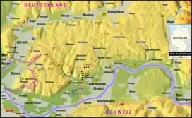 The Dinkelberg is a partially forested hill range, up to 536.2 m above sea level (NHN),[1] about 145 km2[2] in area, in the High Rhine region of Germany. It lies within the counties of Lörrach and Waldshut in the German state of Baden-Württemberg and the Swiss canton of Basel-Stadt. It is on the southwestern edge of the Southern Black Forest, from which it is geologically distinct.