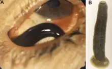 (A) D. ferox infesting the eye of a dog; (B) anatomical view of D. ferox