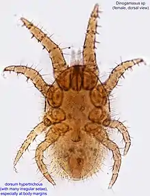 - ↑ Joharchi, Omid; Khodaparast, Razeyeh; Ghasemi Moghadam, Sahebeh (2016). "First report of the genus Dinogamasus Kramer (Acari: Mesostigmata: Laelapidae) from the Middle East Region, with the description of a new species<". Systematic and Applied Acarology. 21 (6): 791. doi:10.11158/saa.21.6.6.