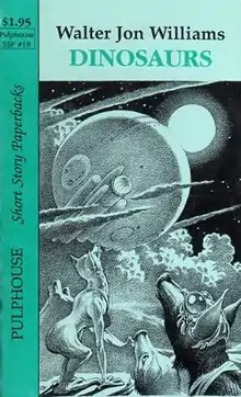 "Dinosaurs" is a science fiction story by American writer Walter Jon Williams. It was first published in Isaac Asimov's Science Fiction Magazine in June 1987 and subsequently republished in The Year's Best Science Fiction: Fifth Annual Collection (1988), The 1988 Annual World's Best SF (1988), Best New SF 2 (1988), Facets (1991), Isaac Asimov's Aliens (1991), ZomerSFeer (Dutch language, 1996), Future on Ice (1998), The Furthest Horizon: SF Adventures to the Far Future (2000), and Exploring the Horizons: Explorers, and The Furthest Horizon (2000).[1]