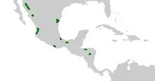Dioon species can be found in Central America between the 15th and 29th northern latitude and are part of the Neotropical floral kingdom. The distribution area includes Honduras and parts of Mexico; it is limited by orographic conditions (height structures) and limited to the north to south mountain ranges in the region. Despite the widespread distribution and ecological plasticity of the genus it is not a vegetation-determining component. The species are found mainly in the tropical rain forest and in tropical wet forests, but also in tropical deciduous rainforests, with softwood rainforests, on dry, rocky slopes, in canyons and on dunes near the coast.[10]