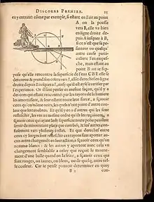 La dioptrique (in English Dioptrique, Optics, or Dioptrics) is a short treatise by René Descartes. It was published in 1637 included in one of the Essays written with Discourse on the Method. In this essay Descartes uses various models to understand the properties of light. This essay is known as Descartes' greatest contribution to optics, as it is the first publication of the Law of Refraction.[1]