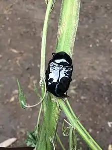 Diplognatha gagates can reach a length of about 16–32 millimetres (0.63–1.26 in).[2] The thorax is very convex. The surface is shining black or reddish. Larvae feed on bird droppings. Young adults are usually reddish brown and feed on flowers, fruits and sap.