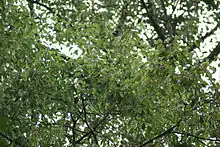 The synonymous species name caudatus is derived from Latin (caudatus = tailed) and refers to the narrow acumen of the leaf apex.[2]