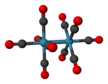 - ↑ N.IGapotchenko; et al. (1972). "Molecular structure of dirhenium decacarbonyl". Journal of Organometallic Chemistry. 35 (2): 319–320. doi:10.1016/S0022-328X(00)89806-X.
