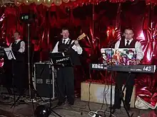 In the summer, several disco polo festivals take place, the largest of which from 1996 to 2011 was the National Festival of Music and Dance in Ostróda (originally held in Koszalin), and since 2011 is the Disco Hit Festival, in Kwakowo near Kobylnica. The biggest stars of Polish dance music perform at these festivals and thousands of fans attend from all over Poland. Disco polo bands and performers also participate in many charity concerts and events including during the Great Orchestra of Christmas Charity.[67] At the end of 2016 a well-known disco polo band, Akcent (Zenon Martyniuk and Ryszard Warot), performed for the first time at the New Year's Eve party in Zakopane, organised by Telewizja Polska.[68][69][70] TVP2 also acquired the rights to broadcast the "25 years of disco polo" gala, which took place on June 25, 2017 at Polonia Stadium in Warsaw.[71] According to Nielsen Audience Measurement, the gala was viewed by 2.6 million people.[72]