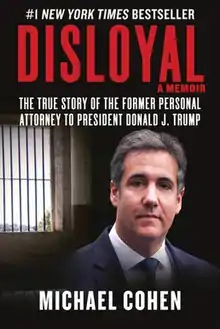 Disloyal: A Memoir; The True Story of the Former Personal Attorney to President Donald J. Trump is a 2020 book by Michael Cohen.[2][3] In the memoir, Cohen recollects his time working as an attorney for Donald Trump from 2006 to 2018, his felony convictions, and other personal affairs. Throughout the book, Cohen alleges numerous incidents of wrongdoing by Trump.[4]