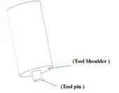 Tool configuration is an important factor to achieve a sound joint. The tool consists of two parts including tool shoulder and tool pin, as shown in below figure. The tool shoulder generates frictional heat, while the tool pin stirs the softened materials. Various pin and shoulder configurations may be used for DFSW. "Cylindrical", "rectangular", "triangular" and "threaded-cylindrical" are the most common tool pin profiles,[8] while "featureless" and "scrolled" are the most common tool shoulder configurations.[9] Tool material selection is dependent on the base materials to be joined. For example, for aluminum/copper joints,[10] hot working alloy steel is generally used, while for harder metals such as titanium/aluminum joints, tungsten carbide is common.[11]