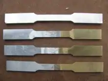 Another important characteristic in DFSW is the final tensile strength. The majority of dissimilar weldments presented similar trend in tensile strength. There are two different materials in DFSW. One is softer than the other. For example, in aluminum to copper joint, aluminum is softer than copper. What would be the tensile strength of the joint? Is it more than both? Is it less than both? What is the requirement for the sound joint? The answer is that tensile strength of the joints in DFSW are a fraction of the tensile strength of the softer material. Therefore, the final tensile strength of the weldments are usually less than tensile strength of both materials, however, in order to be acceptable in the industry, it is usually more than 70 percent of the tensile strength of the softer material.[27] Fracture behavior of the tensile specimens shows that majority of the joints failed at the interface along with a brittle fracture. It can be attributed to IMCs developed at the interface. Although, it could successfully improve tensile strength, but the specimens showed brittle fracture which is one of the existing challenge in dissimilar joints fabricated by FSW.
