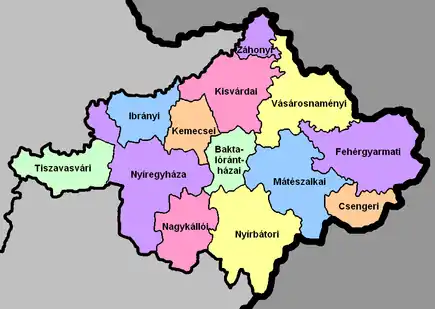A map of the districts in Szabolcs-Szatmár-Bereg County