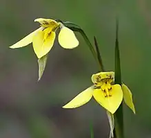 Diuris chryseopsis, commonly known as common golden moths[2] or small snake orchid,[3] is a species of orchid that is endemic to south-eastern Australia. It is a common and widespread species growing in woodland, often in colonies and has up to four drooping, golden-yellow flowers. It is similar to several other orchids and form hybrids with some other Diuris species.