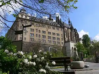 After Frederick's death in 1464,[7] his two sons Ernest and Albert III inherited his land. When Duke William III died in 1482, Ernest annexed Thuringia and returned it to Frederick's original line. Ernest then shared many of his lands in a second division with his brother, Albert, because of the Treaty of Leipzig on 26 August 1485.[8][7] In this second division of the Wettin lands between Ernest and Albert, also known as the Division of Leipzig (Leipziger Teilung), Altenburg fell to Ernest, together with the electoral lands around Wittenberg, the Grimma estates, the Mutschener Pflege, Leisnig, large parts of Thuringia, and the Vogtland region around Plauen. From this time on, Altenburg was historically connected with Thuringia.