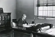 There were still no laboratory facilities for industrial hygiene in Washington, so technical staff was assigned to various academic institutions, such as Yale and Johns Hopkins University, and to USBM.[4] Temporary field offices were set up in New York, Philadelphia, Pittsburgh, Cleveland, St. Louis, and Chicago.[6] During this period, PHS facilities in Washington, D.C. consisted of the Butler Building and Temporary Building C, until it moved to the new Public Health Service Building in May 1933.[5] Additionally, the Old Naval Observatory housed the campus of the Hygienic Laboratory, which in 1930 became the National Institute of Health.[15]