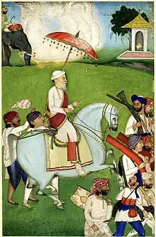 ![]() Equestrian painting of Diwan Dina Nath with his retinue and an elephant | |