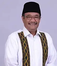 Djarot Saiful Hidayat (born 6 July 1962) is an Indonesian politician who is currently a member of the People's Representative Council. He was the governor of Jakarta, in office between 15 June and 15 October 2017 after being acting governor since 9 May. He replaced his predecessor Basuki Tjahaja Purnama (commonly known as Ahok) when the latter was found guilty of blasphemy against Islam.[2] He was appointed by Basuki as Deputy Governor in 2014 to fill the gap left by the election of Joko Widodo as president.[3]
