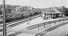 Djursholmsbanan was inaugurated on 20 December 1890, connected to the network of Stockholm–Roslagens Järnvägar at the then Djursholm railway station, later renamed Djursholms Ösby station. The lines were originally owned by the real estate company Djursholms AB, which had been founded in 1889 for the development of the garden town Djursholm on the lands around Djursholm Castle.[5] The creation of the railway was a key part in making Djursholm attractive for potential buyers of lots in the new community, giving them a means of good communication to Stockholm.