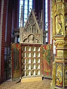 Figure of Queen Margarete of Denmark and three altars