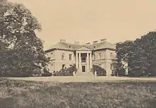 The palace of Augustyn Gorzeński, designed by Stanisław Zawadzki, was built between 1795 and 1799. It is early classical architecture, which exhibits some late Baroque style characteristics inside. Externally, it combines traditional structural elements of a Polish aristocratic seat with double wings and Freemason symbolism.